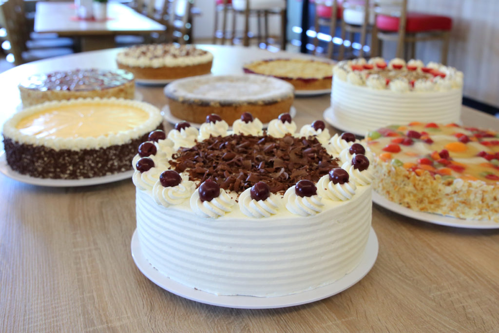 Obige Bilder sind daher beispielhaft. Vor Ort erhalten Sie Informationen dazu, welche Torten und Kuchen wir tagesaktuell für Sie im Angebot haben.