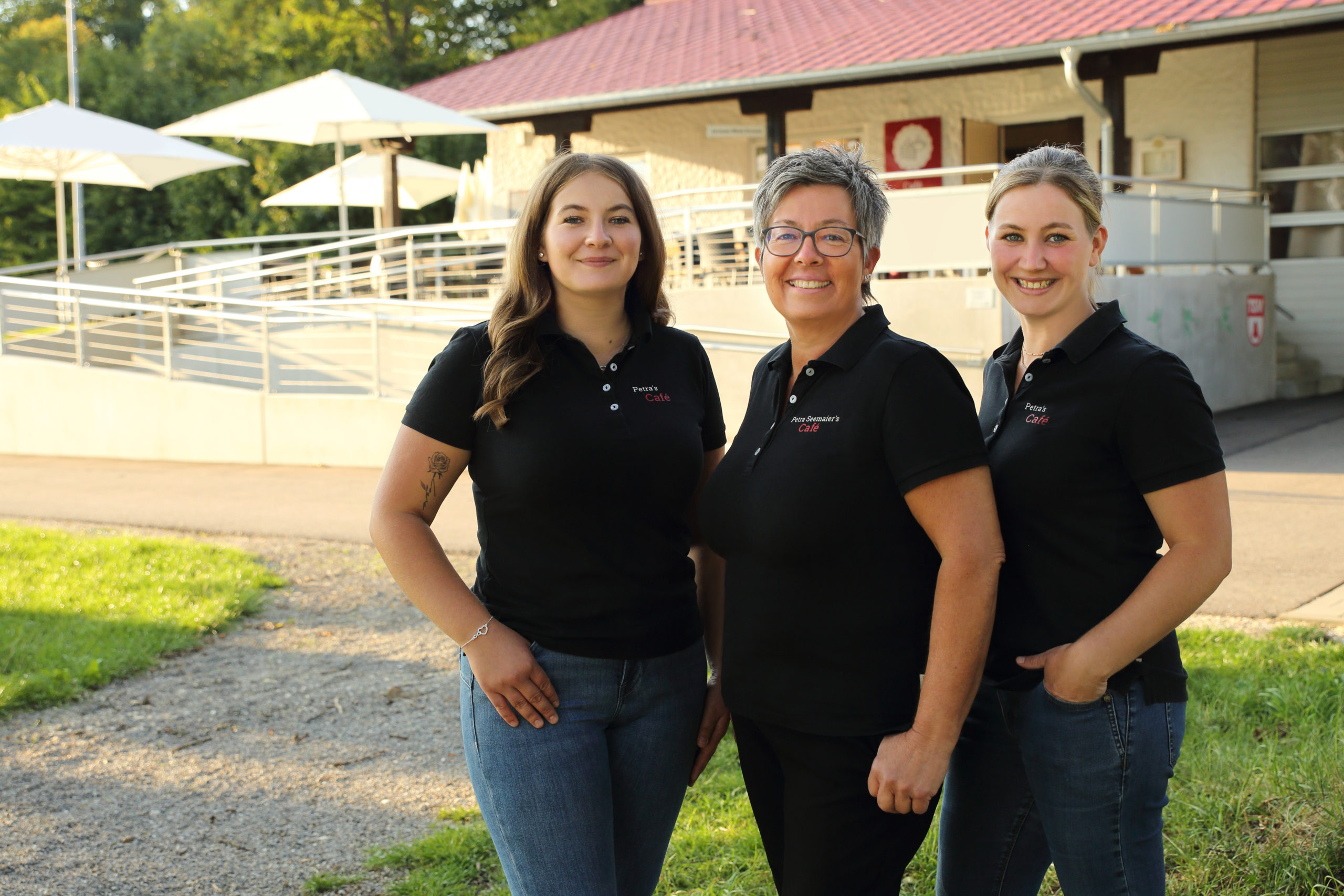 Ihre Gastgeberin Petra Seemaier mit Anke (rechts im Bild) im Service und